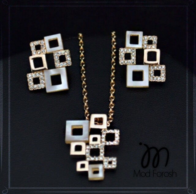 ست گردنبند و گوشواره با روکش آب طلای 14 عیار و مروارید و نگین های چک مدل: 144 .....