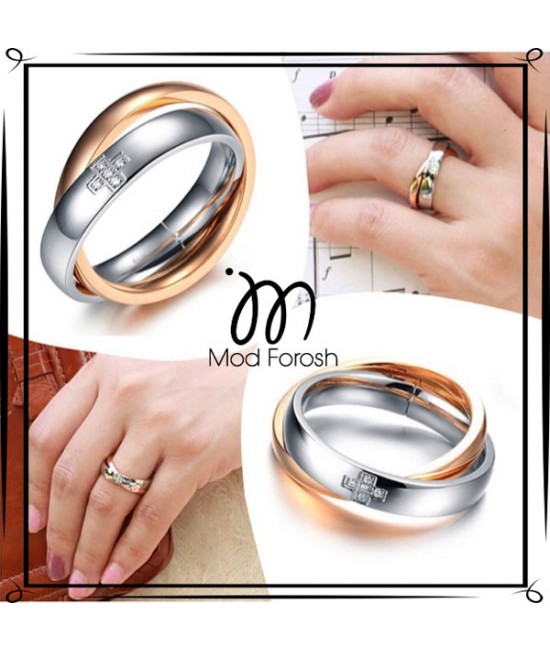 انگشتر استیل آب کاری شده با نگین های ظریف زیبا با رنگی ثابت بسیار شک و زیبا