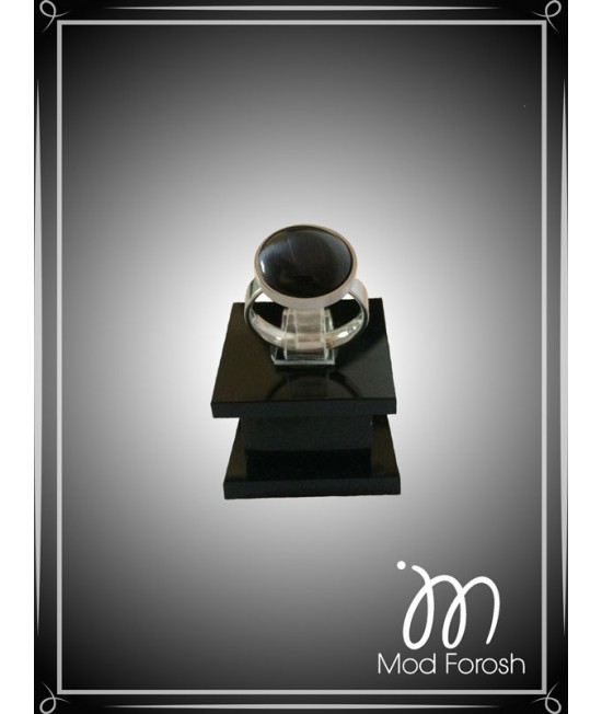 انگشتر استیل دایره ای شکل به همراه یک سنگ که در وسط آن تعبیه شده بارنگی ثابت