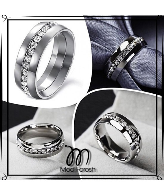 انگشتر استیل با کریستال های تراشخورده ی زیبا وشیک با رنگ کاملا ثابت